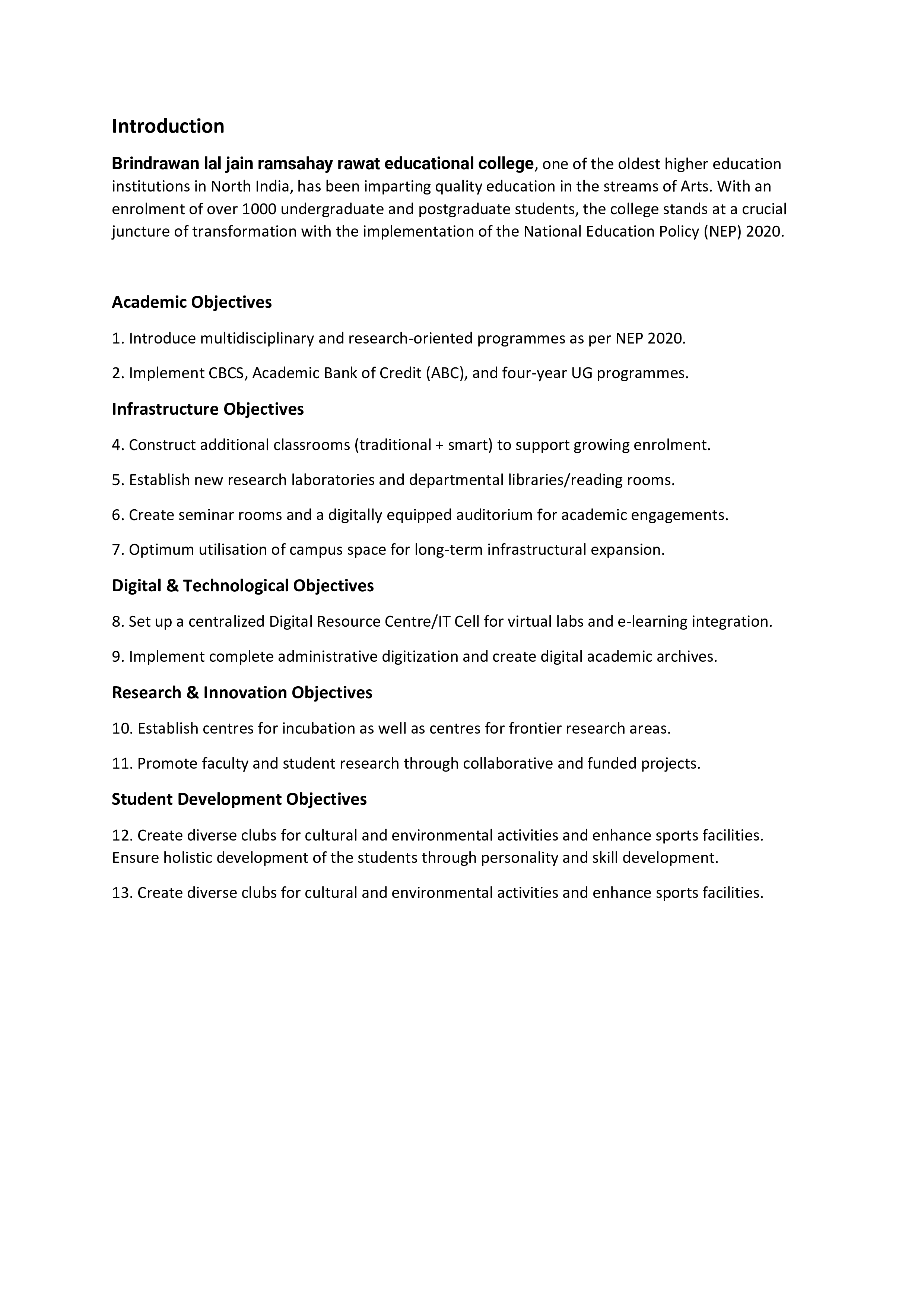 Institutional Development plan